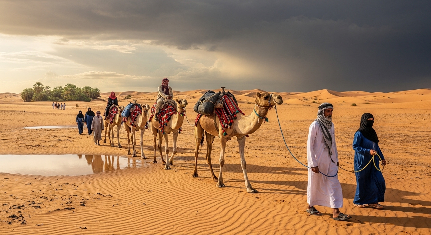 - Summer (Al Seif): As the scorching summer heat intensified and water sources in the interior dried up, the great migration towards the coast began. Coastal areas, influenced by higher humidity and the possibility of the Al Kaus rain, offered more reliable, though still scarce, water and forage.